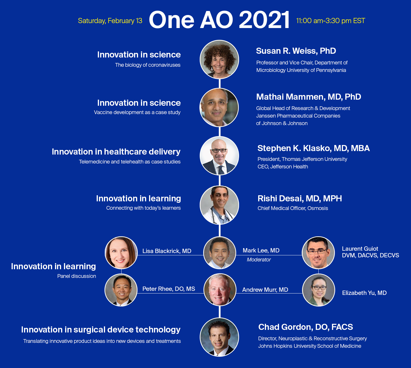 to the success of any organization. We are excited to announce that our upcoming One AO 2021 meeting will focus on this topic. With an incredible speaker lineup, the event will feature talks on innovations in science, medicine, patient care, and learning. Join our virtual conference on February 13, 2021 and participate in these discussions.