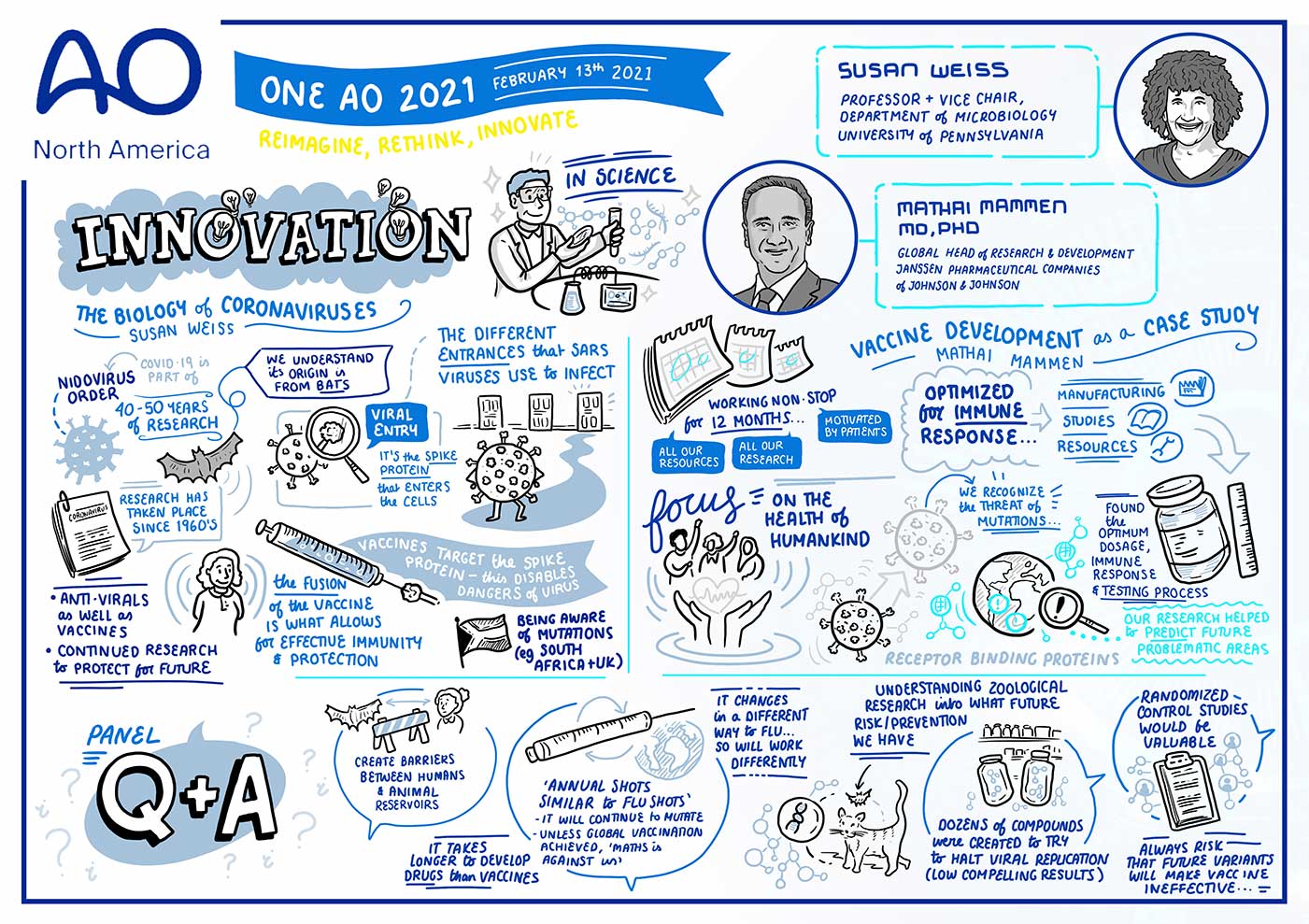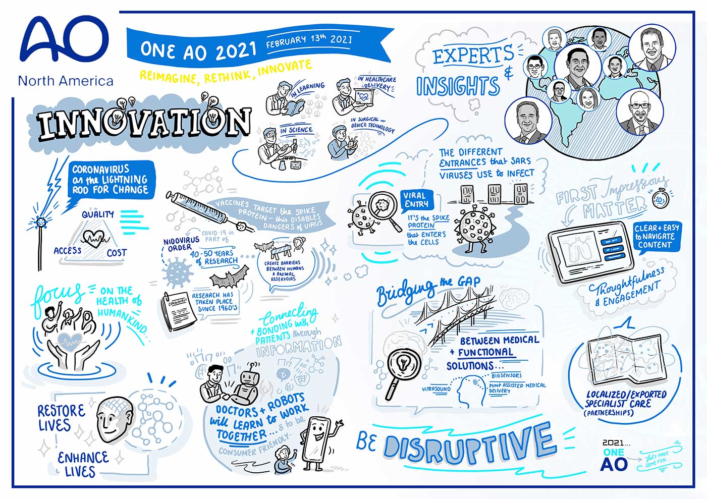 Illustrated lecture highlights from One AO 2021 speakers. Click on an image to view it in full size.