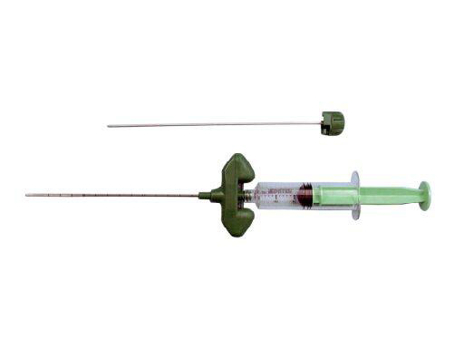 The biopsy needle is double sterile packed and available in 10 cm and 15 cm.