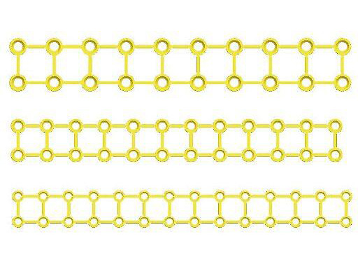 The existing Craniofacial Set has been extended to include longer length Strut Plates, the 2.0 mm Strut Plate with 20 holes, 1.5 mm Strut Plate with 24 holes, and 1.3 mm Strut Plate with 26 holes. These new Craniofacial Plates can span across a longer distance to stabilize larger, comminuted fractures.