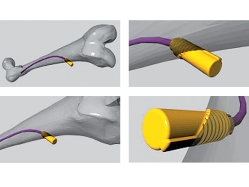 After construction and finalizing of the drawings the first prototypes have been discussed for production in the prototype team of ADIs Workshop. In parallel an alternative solution was worked out by Synthes. The produced End Caps and the alternative of Synthes have then been used for further mechanical testing in cooperation with the Research Service Group of the ARI and Synthes. The test was designed to clarify the following points: difference between using the two designed End Caps and not using an End Cap. The results were checked for distal and proximal migration of the Nail, displacement of the fractured bone model and eventual backing out of the End Cap. The End Caps were tested also in three different insertion angles in relation to the bone, 40, 45, and 50. The test was performed in artificial bone models. After mechanical testing and additional handling tests the Expert Group agreed to pursue ADIs solution because the design incorporated the following features: bidirectional drill tip which allows easy insertion in angles from 40 to 50 and no soft tissue irritation due to the oblique threat design.