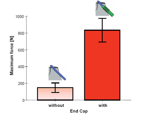 (b) The force necessary to provoke backing out of the nails was up to 6 times higher when using End Caps compared to the condition without End Cap. This difference was statistically significant (P = 0.007).