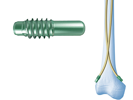 The effectiveness of the End Caps has been proven in mechanical tests enhancing the push-out resistance of the Titanium Elastic Nails through the insertion hole by five times and more. An additional advantage was observed during removal. By removing the End Cap the insertion hole of the nails is opened automatically to a slightly bigger diameter and the nails are then easily grabbed and taken out.