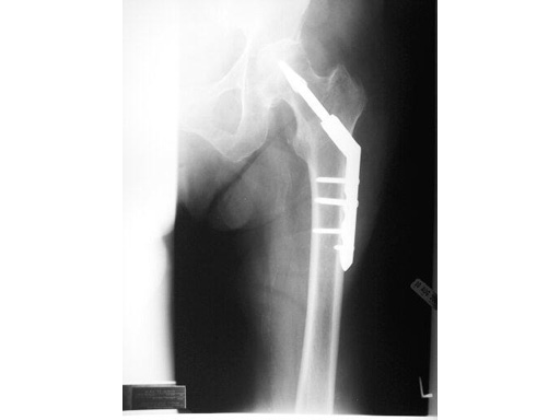 The LCP Dynamic Helical Hip System is a stainless steel plate and helical blade construct used to treat stable and unstable intertrochanteric and pertrochanteric fractures. The system can also be used to treat certain basilar neck and subtrochanteric fractures. A significant feature of the plate portion of the system is the incorporation of a barrel that contains a mechanism which allows the surgeon to lock rotation of the helical blade intraaoperatively. This separate key allows for the free rotation of the helical blade shaft within the barrel, giving surgeons the opportunity to position and fine tune the placement of the plate along the shaft of the proximal femur. When the desired plate position is achieved, the key can then be activated, lock rotation, and still allow for dynamic compression of the fracture. As the LCP DHHS system utilizes a helical blade, it is also a significant improvement over traditional hip screws. In mechanical testing, the helical blade has proven to resist rotational and cantilever loads far greater in fatigue and static testing than traditional hip screws. The helical blade requires less bone removal in the femoral head, therefore preserves as much bone around the construct as possible. The combination of the helical blade and the new LCP side plate create a very stable secure construct which improves upon the original concept of the sliding dynamic hip screw implant. The plates feature locking compression holes which allow for the use of 5.0 mm locking head screws or 4.5 mm cortex screws. The plate design incorporates a limited contact profile and a tapered end for easier insertion through smaller incisions. The LCP DHHS is available in a 130 version with 4.5 and 6 holes, as well as a 135, 140, and 145 with 26 holes each.
