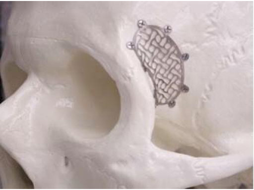 The Temporal Mesh is designed for a neurosurgical access procedure where a keyhole shaped perforation is made in the temporal region of the skull. This perforation is performed with a rotary burr which leaves no bone flap to be repositioned after surgery. The preshaped mesh covers the bony defect and prevents temporal hollowing. The Temporal Mesh is offered in two sizes; 1.3 mm and 1.6 mm.
