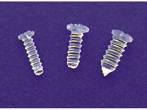 The 1.5 mm Resorbable Cortex Screw line is now also available in 3 mm, 5 mm, and 8 mm length for varying bone thickness. The screws are made of 70:30 poly (L/DL-lactide) and are compatible with the existing Resorbable Plates 1.5, Meshes, and Screwdriver lades. The 1.5 x 3 mm Resorbable Cortex Screws come with new taps in mini quick and hex couplings. The 1.5 x 5 mm and 1.5 x 8 mm screws use the new Adjustable Resorbable Tap.