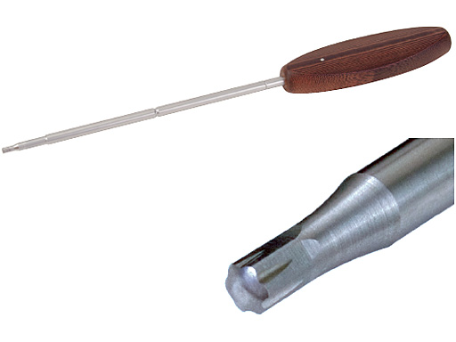 The Star/HexDrive screwdriver combines the T25 StarDrive and 3.5 mm hexagonal screwdrivers into one instrument. The tip of the new screwdriver engages with T25 StarDrive and 3.5 mm hexagonal recess screw heads. This is advantageous for screw removal, especially if the type of drive mechanism of the screw head is unknown. The Star/HexDrive screwdriver can insert or remove any LCP large fragment screw or titanium intramedullary nail locking screw or bolt. The shafts are self-retaining, quick coupling and available in 165 mm and 280 mm lengths.
