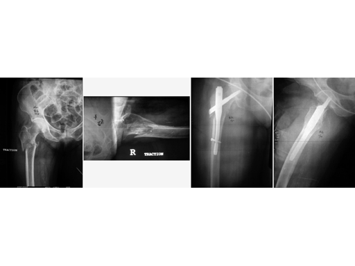 72-year-old female who sustained a closed intertrochanteric fracture in a car accident. The fracture was classified as an 31-A3-1. There were no other injuries reported.