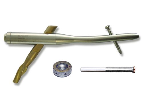 For soft-tissue clearance in very obese patients, the standard trochanteric fixation nail (TFN) insertion instruments may be too short, as the barrel of the standard insertion handle only measures 44 mm in length. Therefore, a longer barrel for the percutaneous insertion handle was designed with an increased length of 144 mm. The added length necessitates a longer mating connecting screw and a longer 5.0 mm hexagonal screwdriver to engage the TFN locking mechanism.