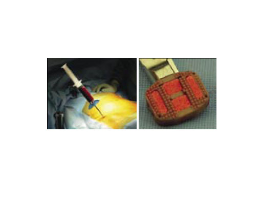 On the other hand, it may be possible with simple intraoperative manipulations to impregnate chronOS with autologous wound healing promoting growth factors released from activated blood platelets and/or osteoprogenitor cells from bone marrow (Fig.3). Thus it may be possible to obtain an osteoinductive bone substitute by autologous means. Promising projects are ongoing at the AO Research Institute in Davos to quantify and understand the osteogenic potential of various autologous substances with a view to clinical application.