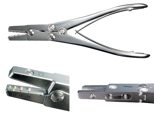 The Burr-Free Plate Cutter is an instrument for the cutting of plates in the already existing Compact Midface System. The instrument is therefore suitable for use on midface plates from 1.0 mm to 2.0 mm in size. Markings on the side of the instrument indicate the correct position of the plates as well as the direction of insertion. The contours on the cut implants are burr-free, even if the instrument has been used in long term. Its ergonomic design results in improved handling properties and reduced amount of needed instruments.
