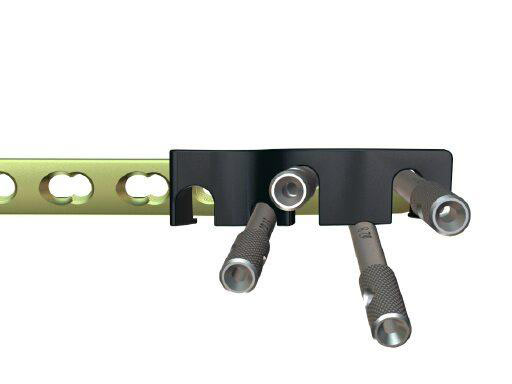A specially adapted Guiding Block allows easy and correct insertion of the drill sleeves into the distal plate area.