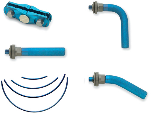 Compatibility of all lines and dimensions is ensured. All clamps are available as open and snap-on version. The indications are very flexible depending on the experience of the surgeon and the material available.