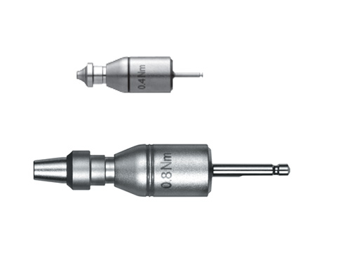 The Torque Limiters permit safe screw insertion and tightening with a defined torque of 0.4 Nm or 0.8 Nm. The Torque Limiters may be used with every screw-plate fracture fixation system where a torque of less than 0.4 or 0.8 Nm is recommended, eg, 2.0, 2.4 and 2.7 mm Locking Head Screws for Compact Hand System, Compact Foot Systems, Distal Humerus Plates, Distal Radius Plates, or the UniLOCK System.