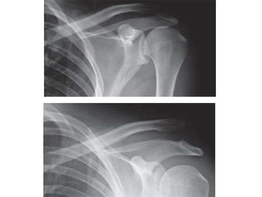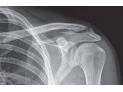 Follow-up x-ray after 10 weeks. Begining ossification in coracoclavicular ligament.