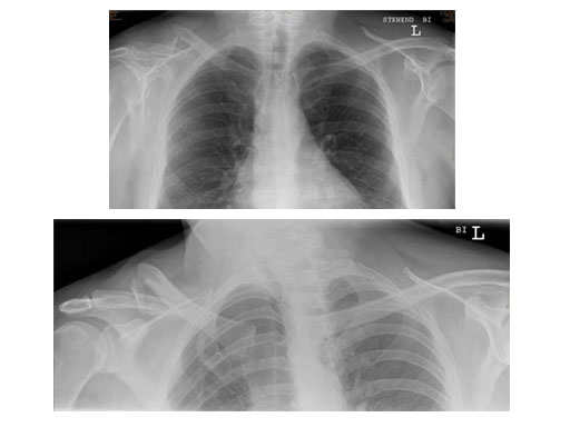 Hill JM, McGuire MH, Crosby L (1997). Closed treatment of displaced middle-third fractures of the clavicle gives poor results. J Bone Joint Surgery; 79B(4): 537-41.