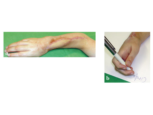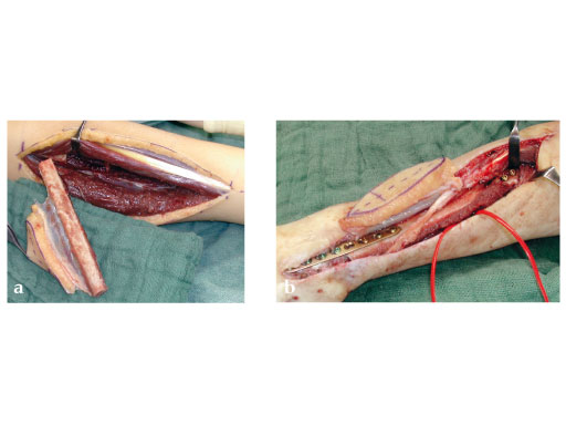 Fig 3a: Microvascular osteocutaneous free fibula flap for reconstruction of radius and dorsal skin.