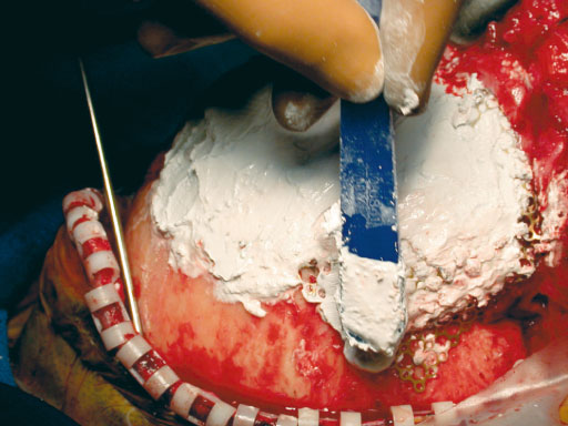 Figure Norian CRS Fast Set Putty being applied to a cranial defect.