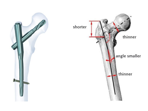 The design of the PFNA was developed based on the anatomy of the Caucasian population. For the average Asian patient, the fit of these implants is not optimal. Therefore, cadaver studies using CT scans were performed to adapt the design of the PFNA to the anatomy of the Japanese and other Asian population.