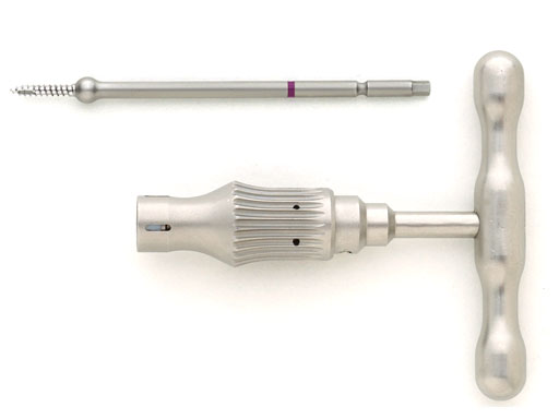 All threaded reduction tools are equipped with a hex drive coupling. This allows mounting them onto the new t-handle with hex coupling, which was developed as the main control device for the reduction tools. One key requirement in the development process that was met was that attaching and detaching of the reduction tools needs to be uncomplicated. Therefore the surgeon now has the option or to removal of the t-handle after reduction for better visualization of the fracture during surgery. Furthermore he reduction tools can be inserted with a standard screwdriver handle if preferred.