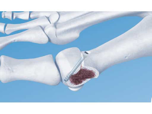 2.4 mm headless compression screws (HCS) are indicated for fixation of fractures and nonunions in small bones and small bone arthrodeses, including scaphoid fractures; intraarticular fractures of the tarsals, metatarsals, carpals, and metacarpals; bunionectomies and osteotomies; arthrodeses of small joints (eg, phalanges); fractures of the patella, ulna, and radial styloid.