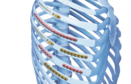 Reconstruction of the chest wall using metallic rib systems is gaining popularity. The AOTK Approved MatrixRIB system involves the use of plates and screws to bridge any defect and provide support for the chest wall following resection. It is a unique system offering stable fixation of normal and osteoporotic ribs combined with a minimally invasive technique. Although many rib fractures are treated conservatively, some patients benefit from surgical stabilization. The potential benefits of surgical intervention include reduced duration of mechanical ventilation support, shortened ICU stays and hospitalization, better secretion management through efficient cough and minimized chest wall deformities resulting from trauma.
