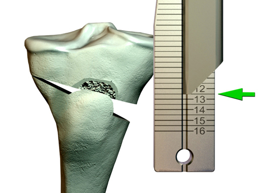 For the osteotomy, one can use newly developed chisels with rounded edges and measuring scales to determine the depth of penetration. They also come in different widths.