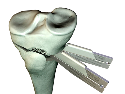 The existing TomoFix medial high tibia (TomoFix MHT) for openwedge osteotomies has been redesigned for better soft-tissue protection and to minimize rotation during compression.