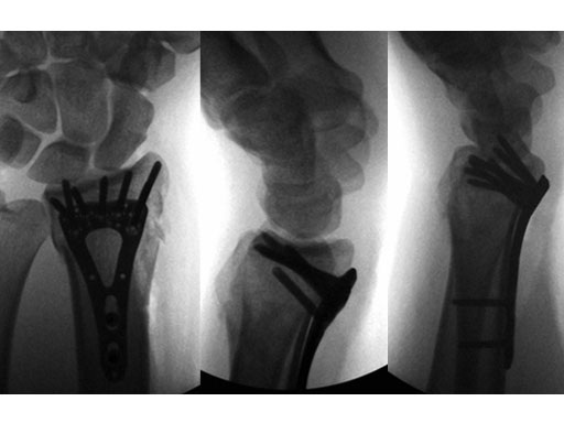 Fig 3ac Postoperative x-rays showing comparison of plate alternatives.