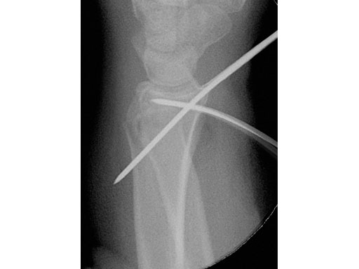 Fig 1 Intraoperative view showing reposition of the radiocarpal joint with the K-wire.