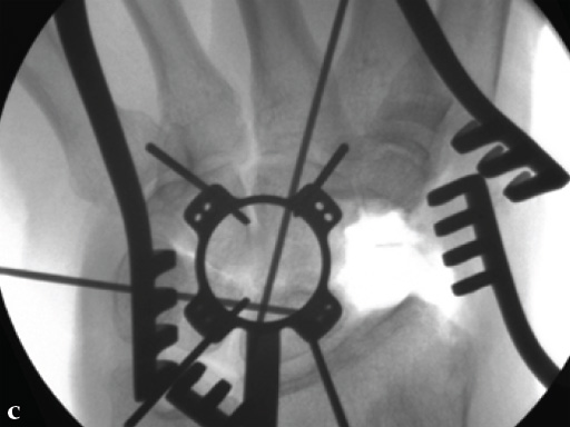 Fig 4c Once the carpal junctions have been putting closer by the new reduction-compression guide, reaming is done.