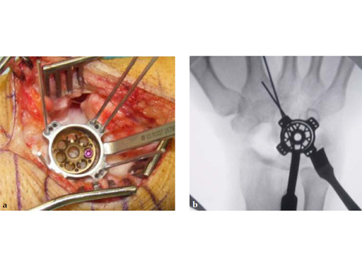 Fig 4b The reduction reaming guide allows midcarpal distraction for bone graft packaging, and then application of compression at the carpal bones junctions.