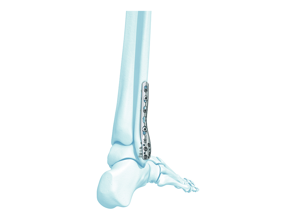 The 2.7/3.5 mm LCP lateral distal fibula is an anatomically designed plate for the treatment of fractures, osteotomies, and nonunions of the metaphyseal and diaphyseal region of the distal fibula, especially in osteopenic bone.