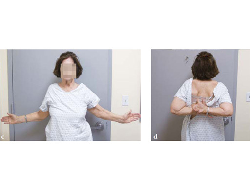 A 72-year-old woman suffered a four-part fracture of the left proximal humerus following a fall from a standing height. The patient underwent open reduction and internal fixation of the proximal humeral fracture.