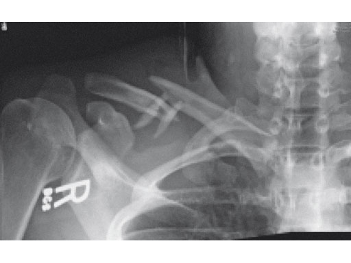 A 22-year-old man sustained an open clavicle fracture after a motorcycle injury.