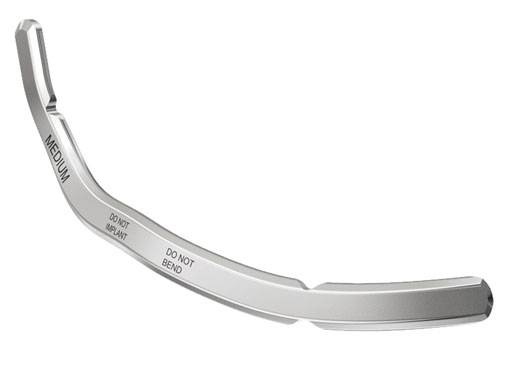 One of the biggest challenges in mandibular reconstructive procedures is the bending of the large (or heavy) reconstruction plates. Not only can this become a time-consuming process, the bending tools can also introduce stress into the plate and even leave marks. Oftentimes this can lead to reduced fatigue life of the implant. The new preformed reconstruction plate was designed based on the matrix mandible systems 2.5 mm (light blue) plates to overcome the effects of plate fatigue due to overinstrumentation.