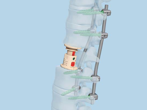 The implant encompasses modular endplates to accommodate multiple approach options. There are six endplate footprints that range from -10 to 20 degrees and construct heights that range from 22 to 145 mm, allowing the surgeon to customize the implant to better match patient anatomy.
