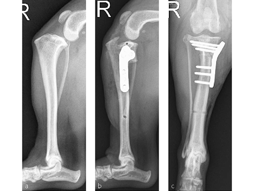Cranial cruciate ligament tears are a common cause of lameness in dogs. The slope of the tibial plateau in canines is much greater than in humans meaning that over time, any repetitive force or loading can lead to chronic, progressive damage and rupture of the cranial cruciate ligament. The TPLO procedure dynamically stabilizes the knee by eliminating cranial tibial subluxation during the weight bearing phase of locomotion. The TPLO plates are available with six different profiles (3.5 mm, 3.5 mm small stature, 3.5 mm broad, 2.7 mm, 2.4 mm, and 2.0 mm) meaning the procedure can be preformed across all sizes of dogs and cats. The appropriate placement of the plates is facilitated by the use of a jig.