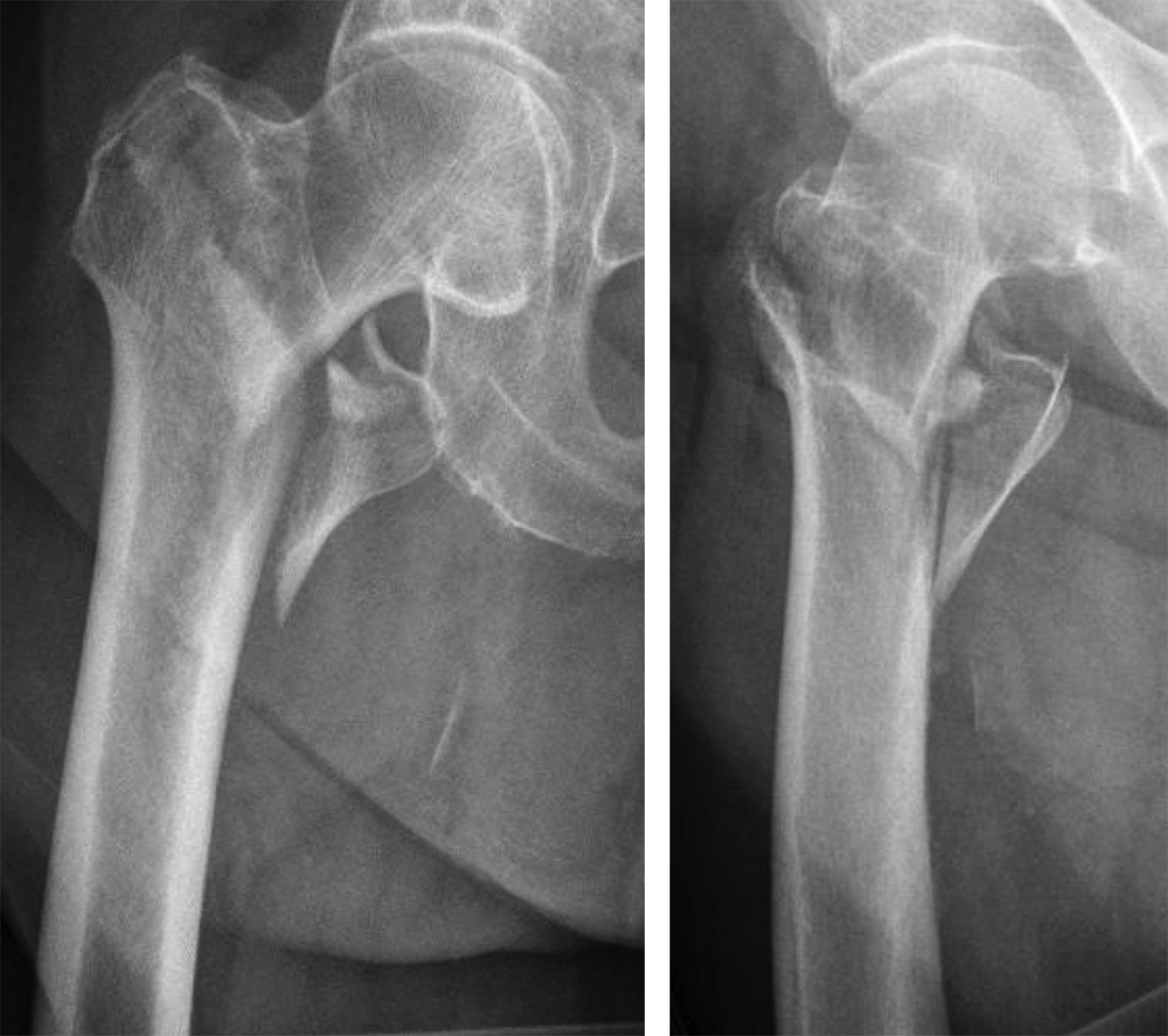 - Combination of pertrochanteric, intertrochanteric, and basal neck fractures