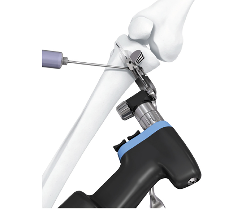 High tibial osteotomy is a technically demanding procedure. Complications commonly include postoperative malalignment, imprecise correction, and damage to the tibial dorsal neurovascular structures. Correcting malalignment to the desired angle with precision is a key element of the surgery. The new TomoFix Osteotomy Instrumentation is intended to assist surgeons to define the osteotomy line and maintain steady sawing during the osteotomy cut. Additionally: