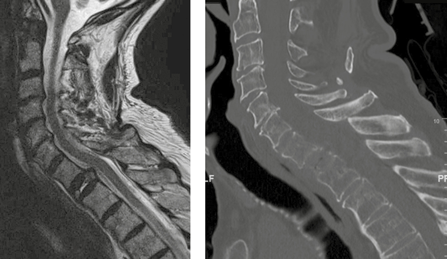 A 73-year-old man with a history of renal cell carcinoma presented with progressive bilateral upper extremity paresthesia/numbness, left upper extremity weakness, and upper back pain with a newly identified T1 pathological fracture (Fig 6).