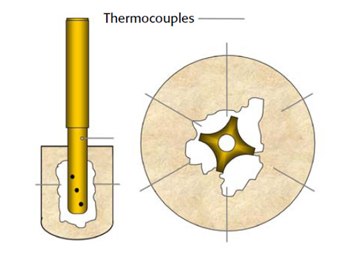 After testing, the locations of all thermocouples with respect to the cement cloud were reconstructed by means of pqCT. The distance of each thermocouple to the cement-bone interface was calculated. Data was statistically analyzed using parametric tests.