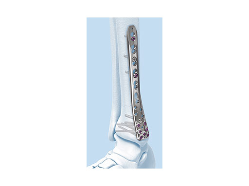 - VA-LCP Anterolateral Distal Tibia Plate: The plate is designed to be placed more distally than the previous 3.5 mm LCP Anterolateral Distal Tibia Plate. It also provides more coverage in the distal anterolateral area. Screw angulations at nominal angle are targeted for Volkmann's triangle and the Chaput fragments