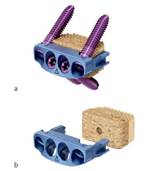 The Zero-P Natural plate was designed for use with the Corticocancellous (CC) Natural allograft spacer processed by the Musculoskeletal Transplant Foundation (MTF) (Fig 1). It features retention arms that are designed to securely attach to the allograft spacer and its height is slightly undersized to the corresponding CC Natural allograft spacer offering potential to avoid stress shielding.