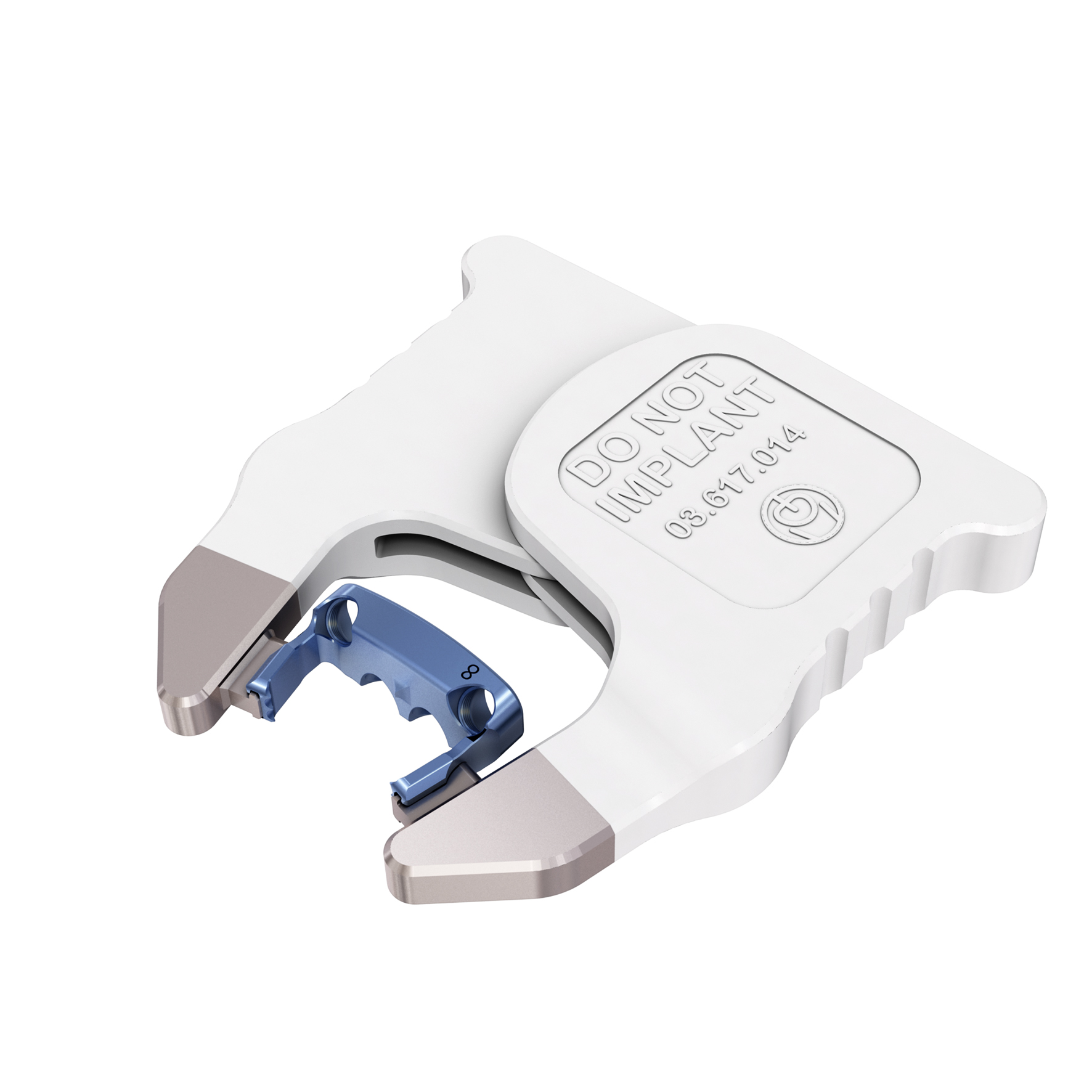 The Zero-P Natural plate firmly attaches to the allograft spacer. This enables simultaneous insertion for a more streamlined surgical technique. Each plate is supplied sterile-packaged and mounted to an assembly tool that allows the plate to be coupled to the allograft spacer (Fig 3).