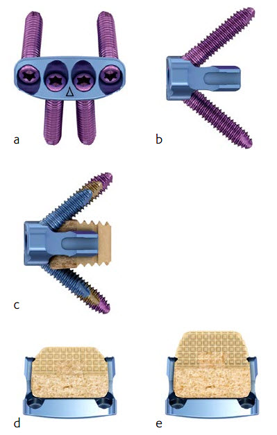 - One-step locking head screws (Fig 4a-c) that form a bone wedge with a 40 5 cranial/caudal angle and 2.5 medial/lateral angle