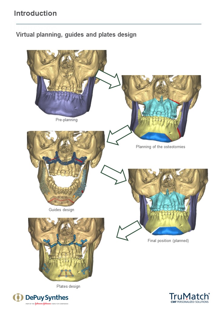The potential benefits and actual limits of an integrated 3-D virtual approach for the treatment of patients and requirements for craniomaxillofacial surgery are discussed comprehensively from our experience using 3-D virtual treatment planning clinically. The next steps for this initiative will be to design additional publications that will offer this same guidance during the online designing process of the TruMatch PSI products.