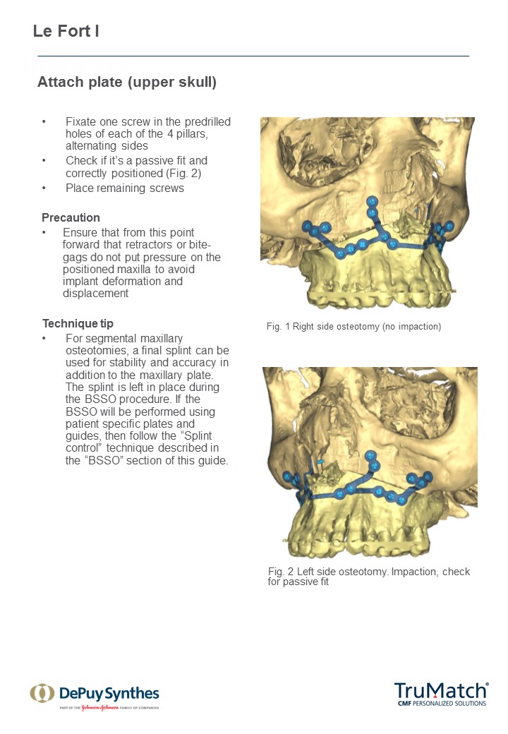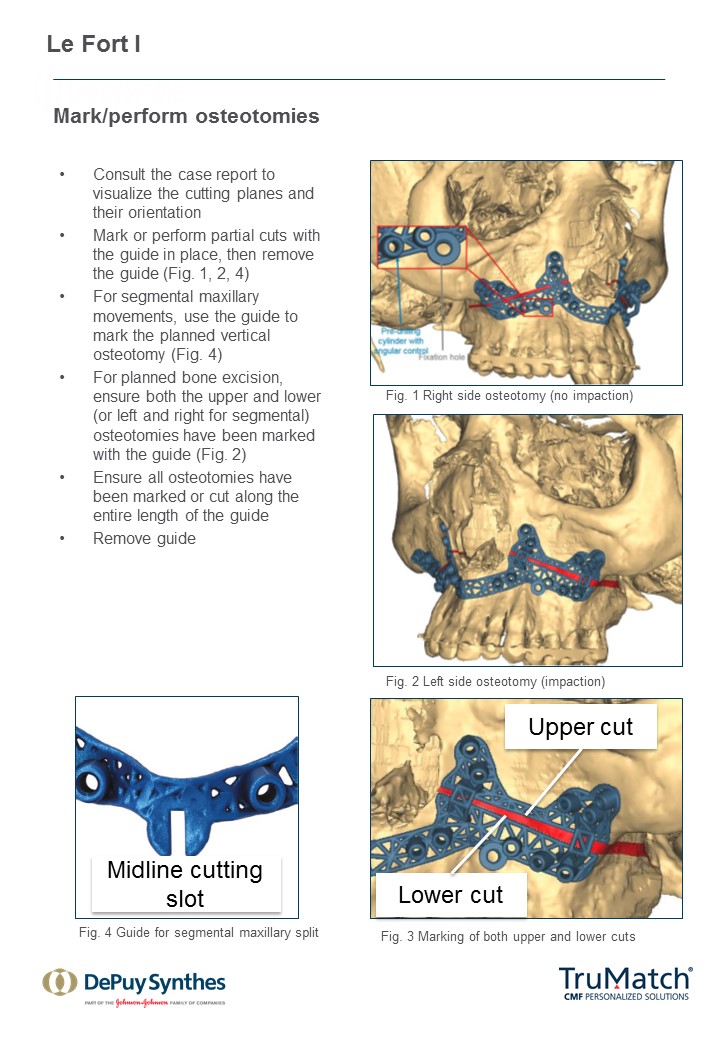As a first step in this initiative, a technique guide for the TruMatch Orthognathics Platform has been developed with the oversight of the AOTK (CMF), which explains all surgical steps in detail, including insights from experts into how to maximize both safety and accuracy (Figs 15). This project follows the AOTK principle that AO experts involved in the development of a device are also in best position to provide guiding advice on their indications and use.