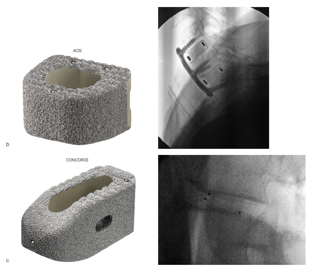 PROTI 360° is a family of integrated titanium interbody cages (Fig 1) that promote spinal fusion, intended for use in patients with degenerative disc disease (DDD). The cage family includes the ACIS PROTI 360° System for cervical fusion, and the T-PAL PROTI 360° System and CONCORDE PROTI 360° Systems for lumbar interbody fusion.