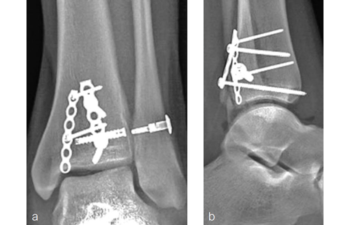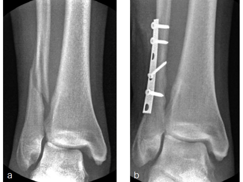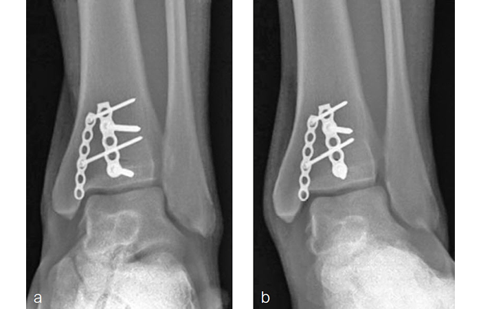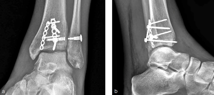 Proactive recognition and adequate treatment of syndesmotic injuries are important to restore ankle function and prevent poor clinical outcomes including degenerative ankle disease. Unstable syndesmotic injuries typically require surgical stabilization [3, 4]. Accuracy and maintenance of syndesmosis reduction are considered key factors for a successful treatment. If an associated fracture is present, the length, alignment, and the rotation of the fibula must be restored before syndesmotic reduction and fixation.